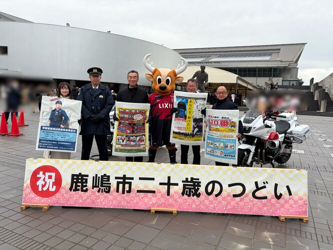 1月11日(日)、カシマスポーツセンターにて行われたキャンペーンに参加しました。当社からは4名参加し、成人をむかえられた方へ防犯の呼びかけを行いました。