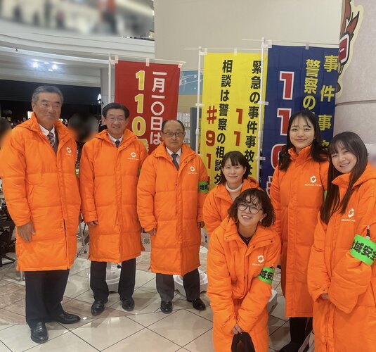 1月10日(土)、イオンモール水戸内原にて行われたキャンペーンに参加いたしました。当社からは8名参加し、1日通信指令課長の岡部麟さんと啓発品の配布を行いました。