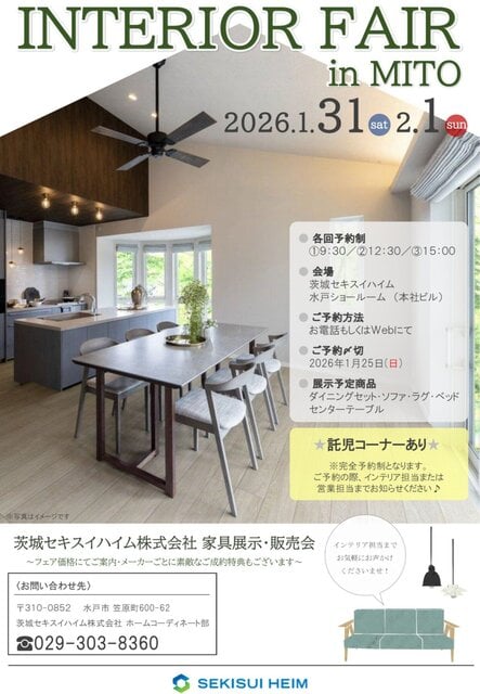 ダイニングテーブルやソファなどの家具展示・販売会です。インテリア担当がご案内いたします!