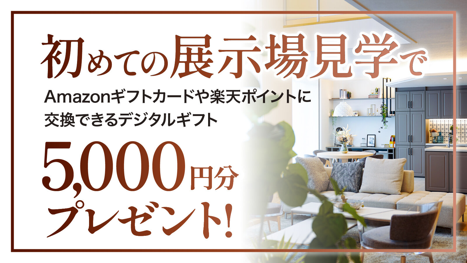 弊社ホームページから展示場見学を予約しご見学されたお客様に、「デジタルギフト 5,000円分」をプレゼント!