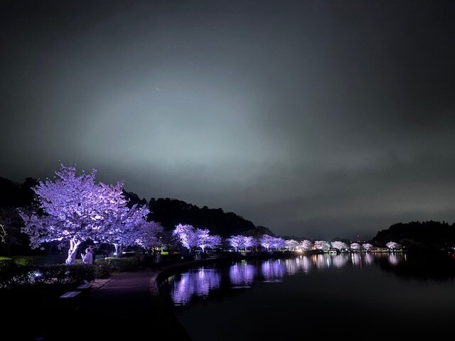 夜は桜がライトアップされ、