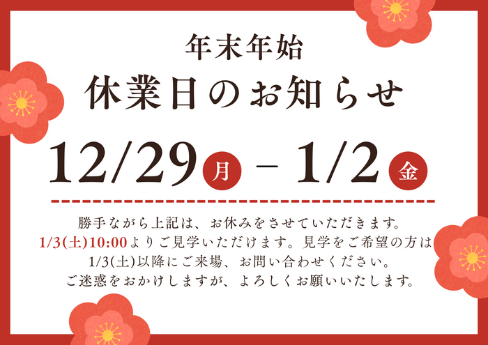 ご見学をご希望の方は、1/3(土)以降にご来場、お問合せください。