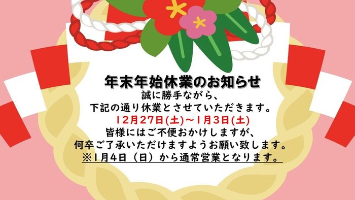 【ハイム笠原店】年末年始のお知らせ