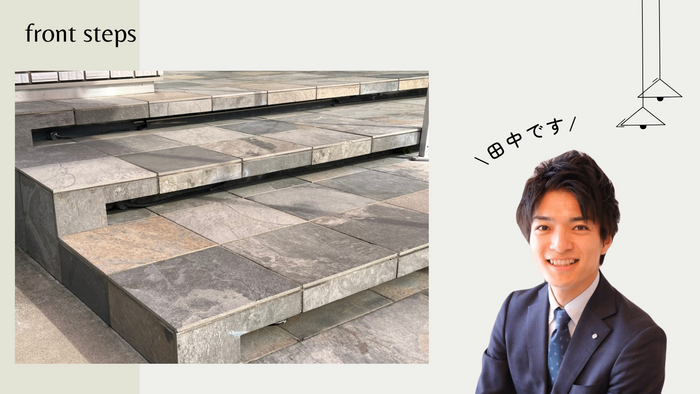 田中さんは玄関ステップの蹴込みがお気に入りだそうです✨