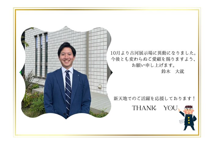 5年目営業マン鈴木大就さんが本日より古河展示場へ異動することになりました(>_<)